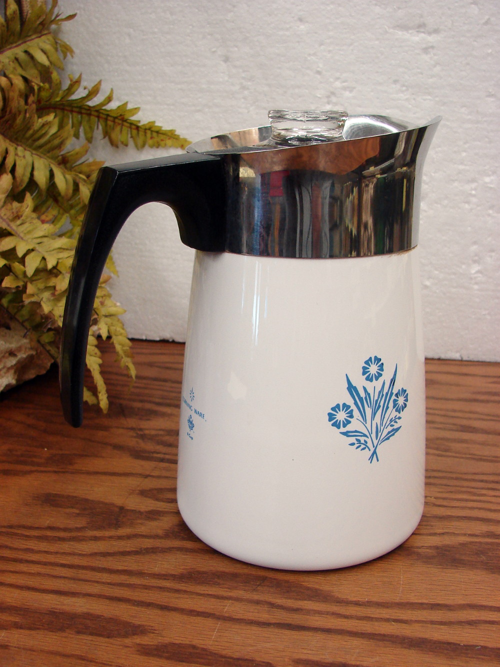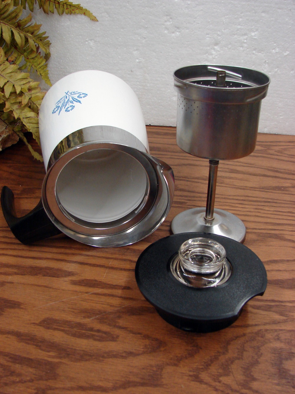 Vintage CorningWare Blue Cornflower Collectible percolator Coffee Maker. Complete 6 Cup for Stove Top includes Pot, Filter assembly and lid with Glass knob. Selling as a collectible. Many more percolators also available.
