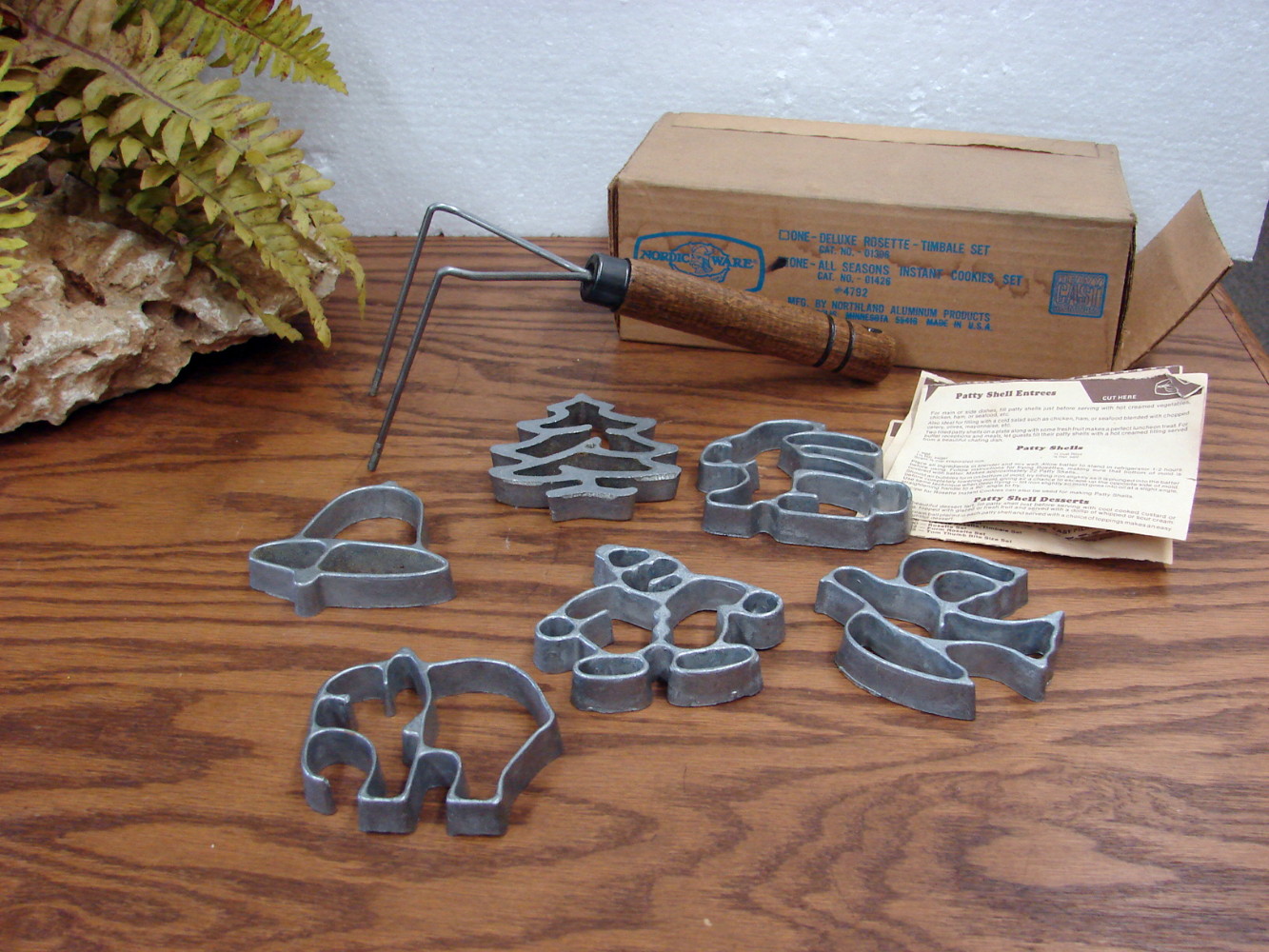 Vintage boxed Nordic Ware set of Rosette and Timbale Iron includes recipes and mold options (Rosettes=open forms, Timbales=closed forms). Perfect for your Scandinavian Treats and deserts. A must have for your kitchen. Yum! This one is an All Season 6 mold and each mold measures about 3″. Many more options also available.
