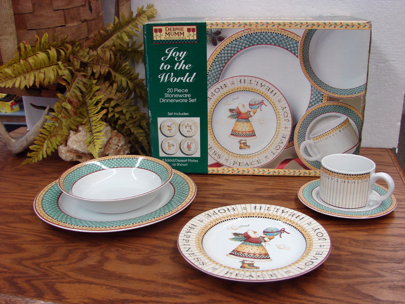 Brand New 20 Pc Set Debbie Mumm Joy to the World Stoneware Dinnerware Set for Four