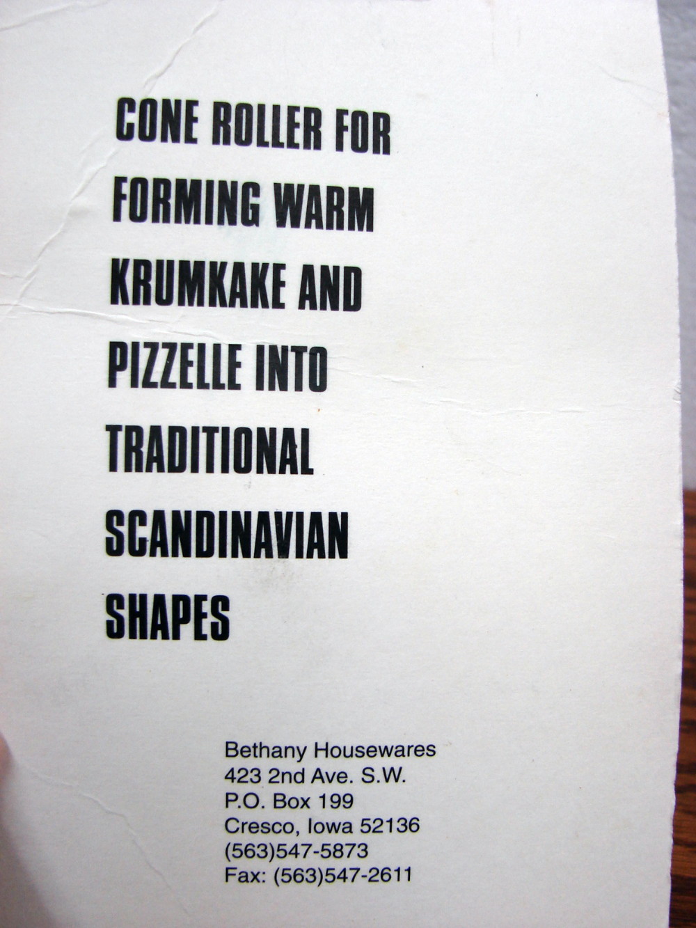 Brand new Bethany Housewares wood Cone Roller #850. A must have addition for your Krumkake Pizzelle Iron. Measures about 6″ long by 1 1/2″ wide.