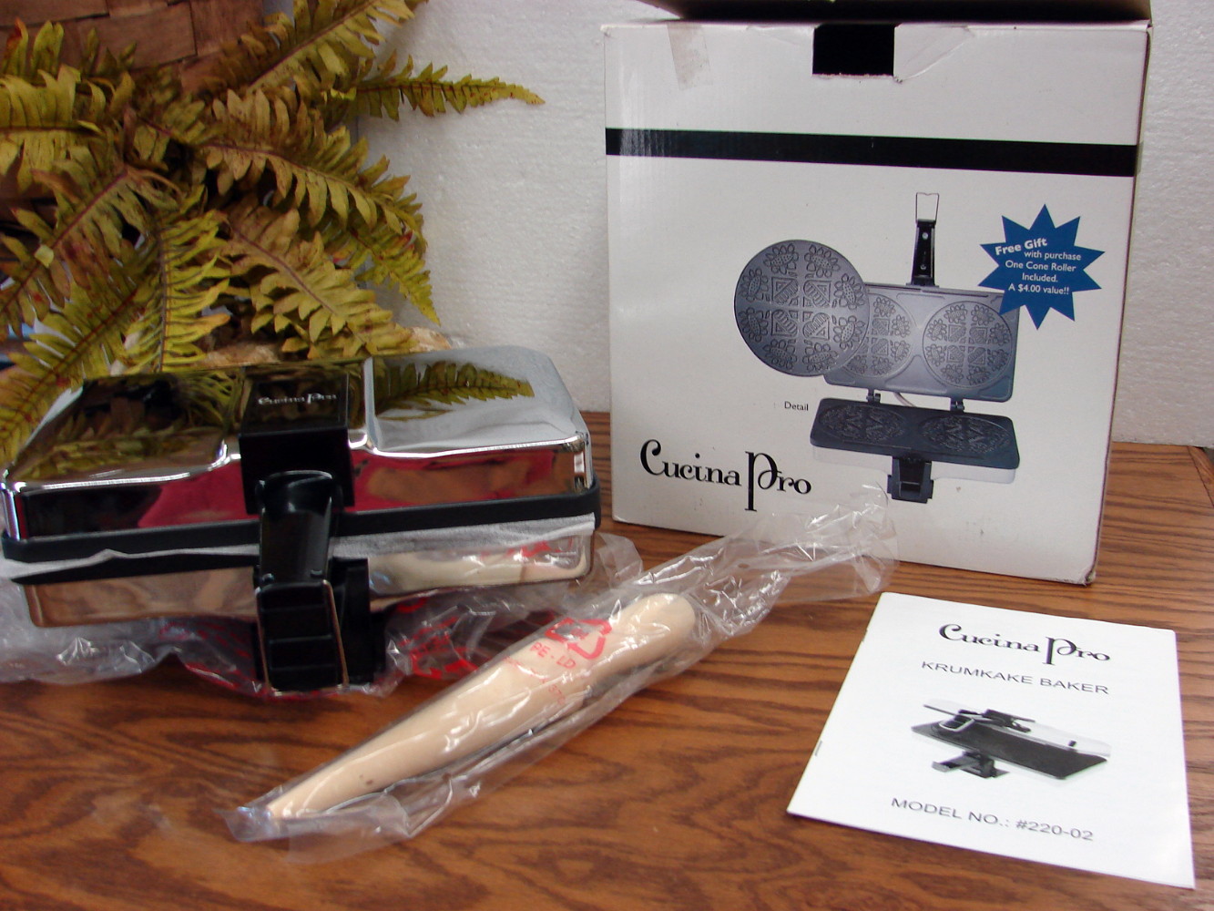 Make your authentic Italian Cookies and Scandinavian Krumkake with this complete Brand New CucinaPro Krumkake electric Waffle Cookie Iron. Model 220-02. Works as intended.