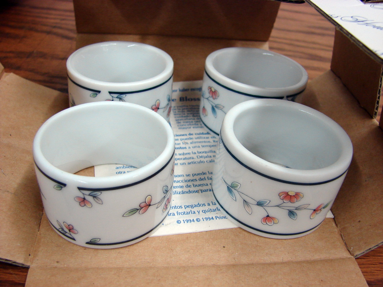Brand New in Box Retired Princess House Heritage Blossom #009 Porcelain Set/4 Napkin Rings