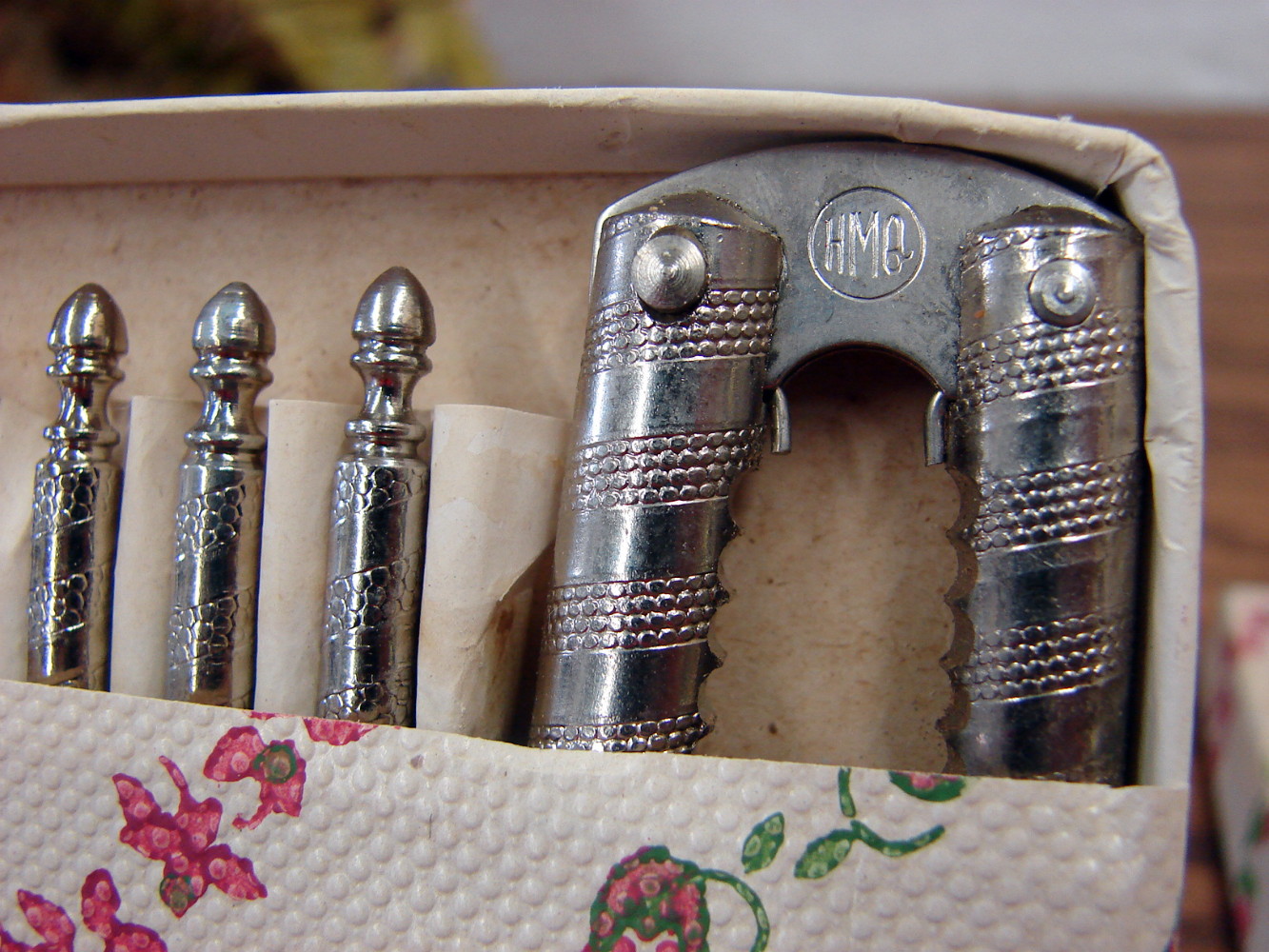 Brand New vintage HMQ Nut cracker and 6 picks in original box. Box shows minor shelf wear. Do not believe they were ever used.