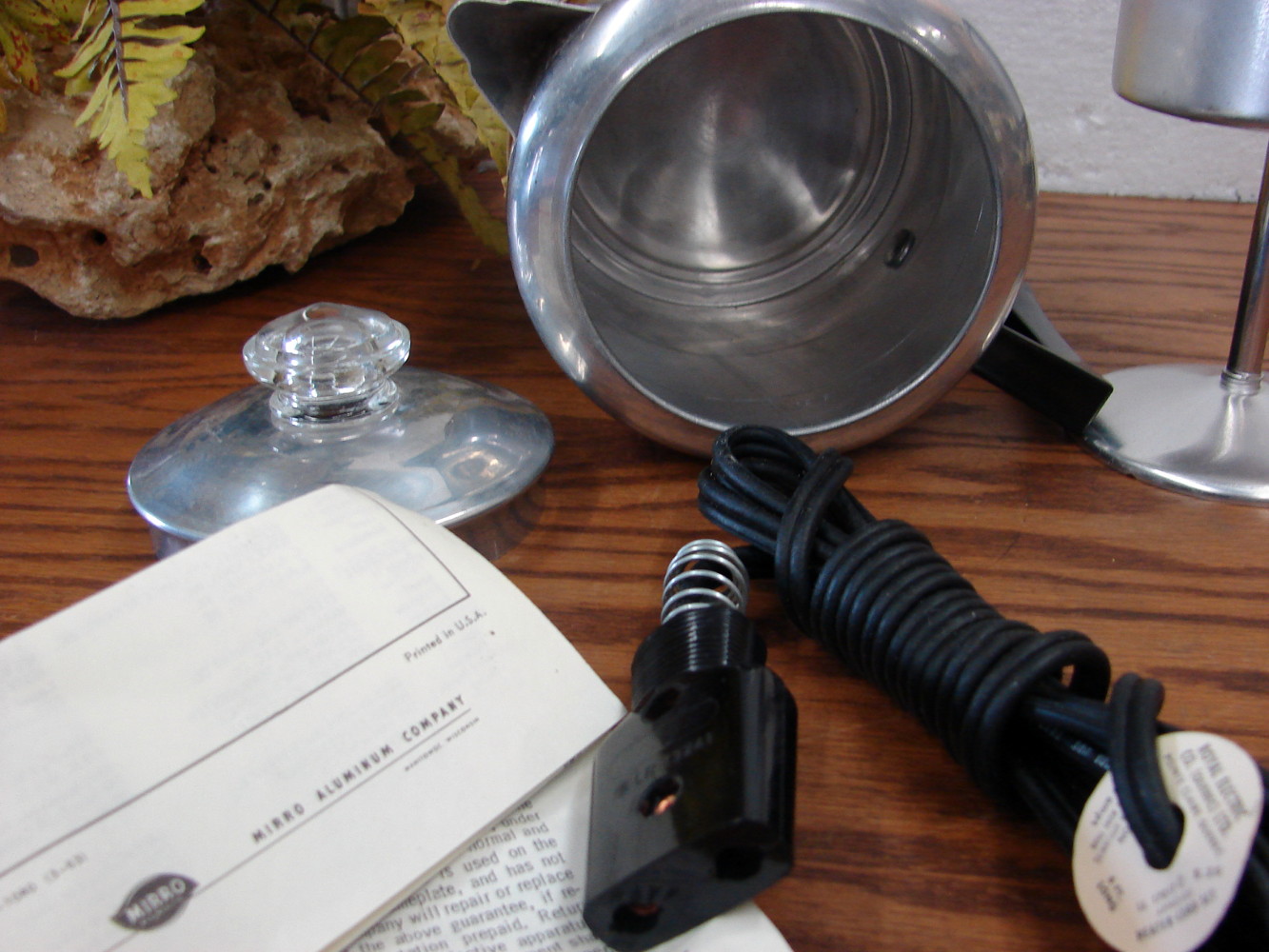 Brand New Vintage Mirro 7-8 Cup Alcoa Aluminum Electric Coffee Percolator, Glass Knob on lid and paperwork was still in the bottom. Some surface rust on the base due to storage, otherwise has never been used.