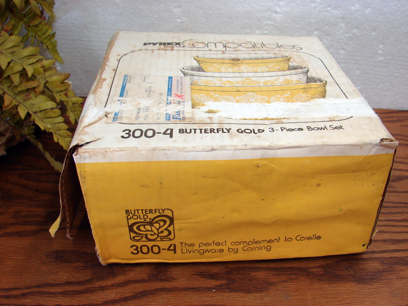 Set/3 Vintage Pyrex Compatibles Butterfly Gold Nesting Mixing Bowl Set in original box with paperwork. Box is worn but bowls have never been used. Includes #401, #402 and #403. Many more options in this pattern also available.