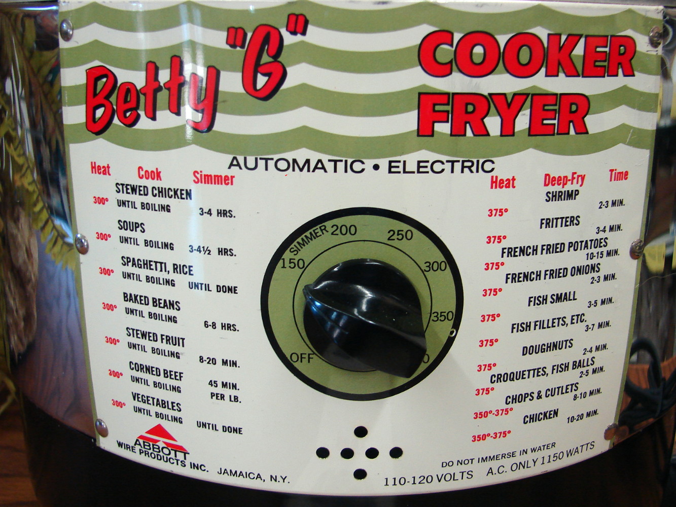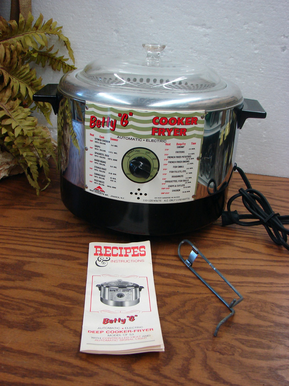 Complete Vintage Betty G Deep Fryer Cooker. Works as intended, some normal use wear. Can be used for slow cooking or deep frying. Complete and tested.
