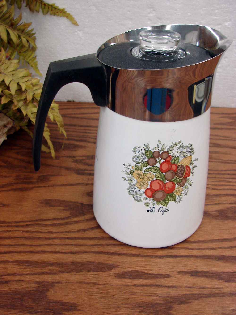 Complete Vintage Corning Ware 6 Cup Spice of Life P-146 Stove Top Coffee Pot Percolator