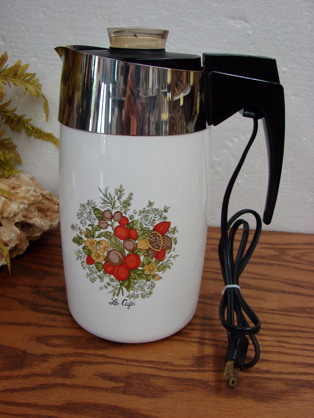 The all American Vintage Kitchen Accessory! Vintage Spice of Life pattern by Corning Ware Made in USA. Previously enjoyed and free from damage. Complete #1210 Electric Coffee Percolator that makes about 10 Cups. Tested and working. More than 50 other variations of Corning Ware Spice of Life Kitchen accessories available.