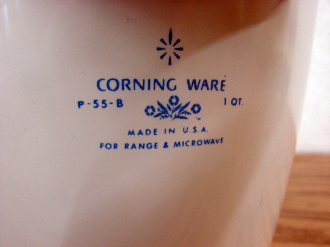 The all American Vintage Kitchen Accessory! Vintage Blue Corn Flower by Corning Ware Made in USA. Spout pan SauceMaker perfect for batter is complete with detachable handle and glass PYREX lid. 4 Cups 32 Ounces 1 Quart. . Previously enjoyed and lid has a corner chip as shown. More options in this pattern also available.