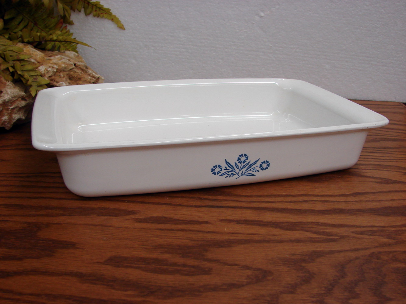 The all American Vintage Kitchen Accessory!   Vintage Blue Corn Flower by Corning Ware Made in USA. P-332 rectangular baking pan that measures about 12 x 7 1/2 x 2″. Previously enjoyed and free from damage. More options in this pattern also available.