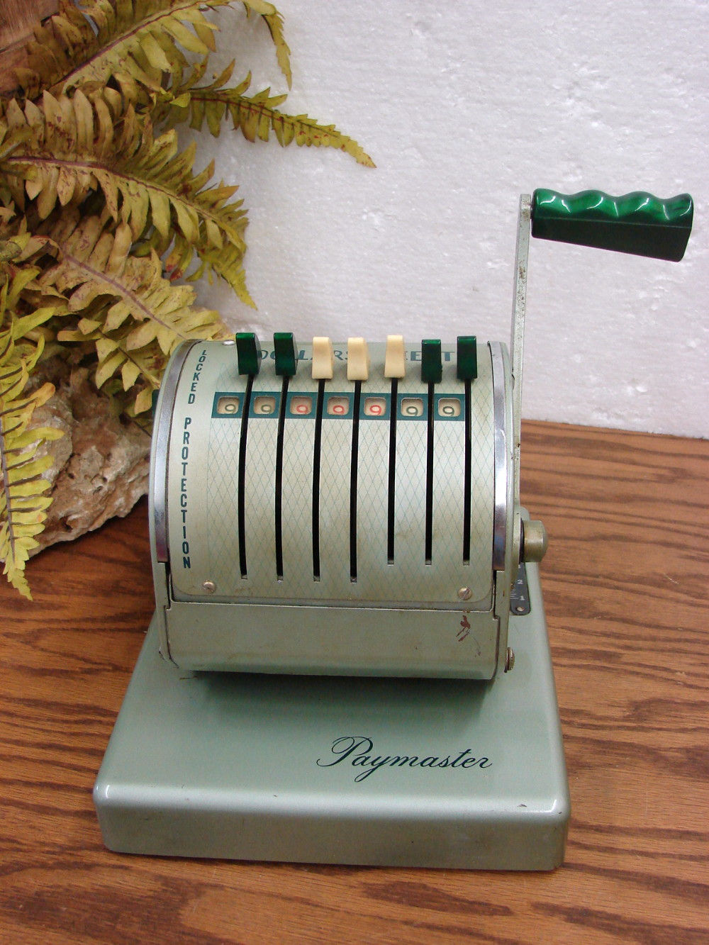 Early Vintage MCM The Paymaster System Series X-550 Check Writer Green 7 Column