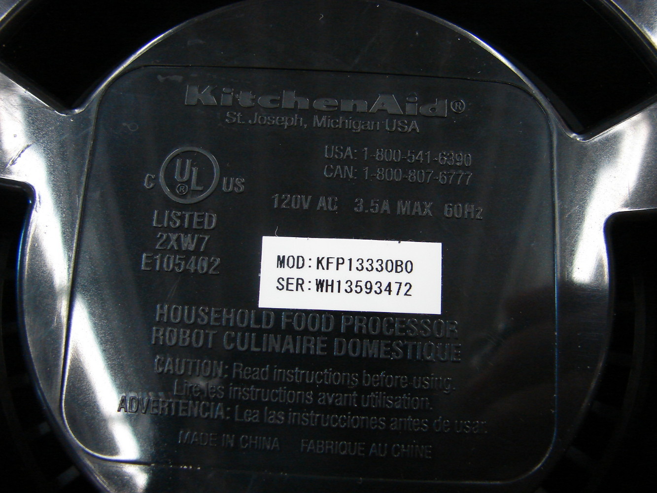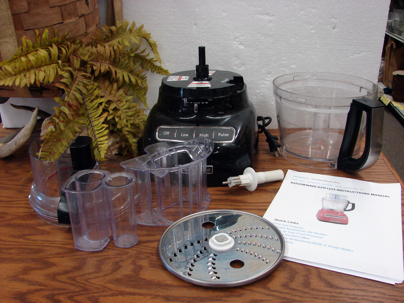 KitchenAid 13 Cup Food Processor #KFP1333 Exact Slice System in Black. Super Clean, Tested and Working. Includes Shredding Blade that is reversible for Fine or Medium Shredding and a copy of the instruction manual. For safety reasons, just remember to line up all parts in order for it to turn on. Matching 5 Quart Lift Stand Professional Mixer also available. Other KitchenAid accessories also available.
