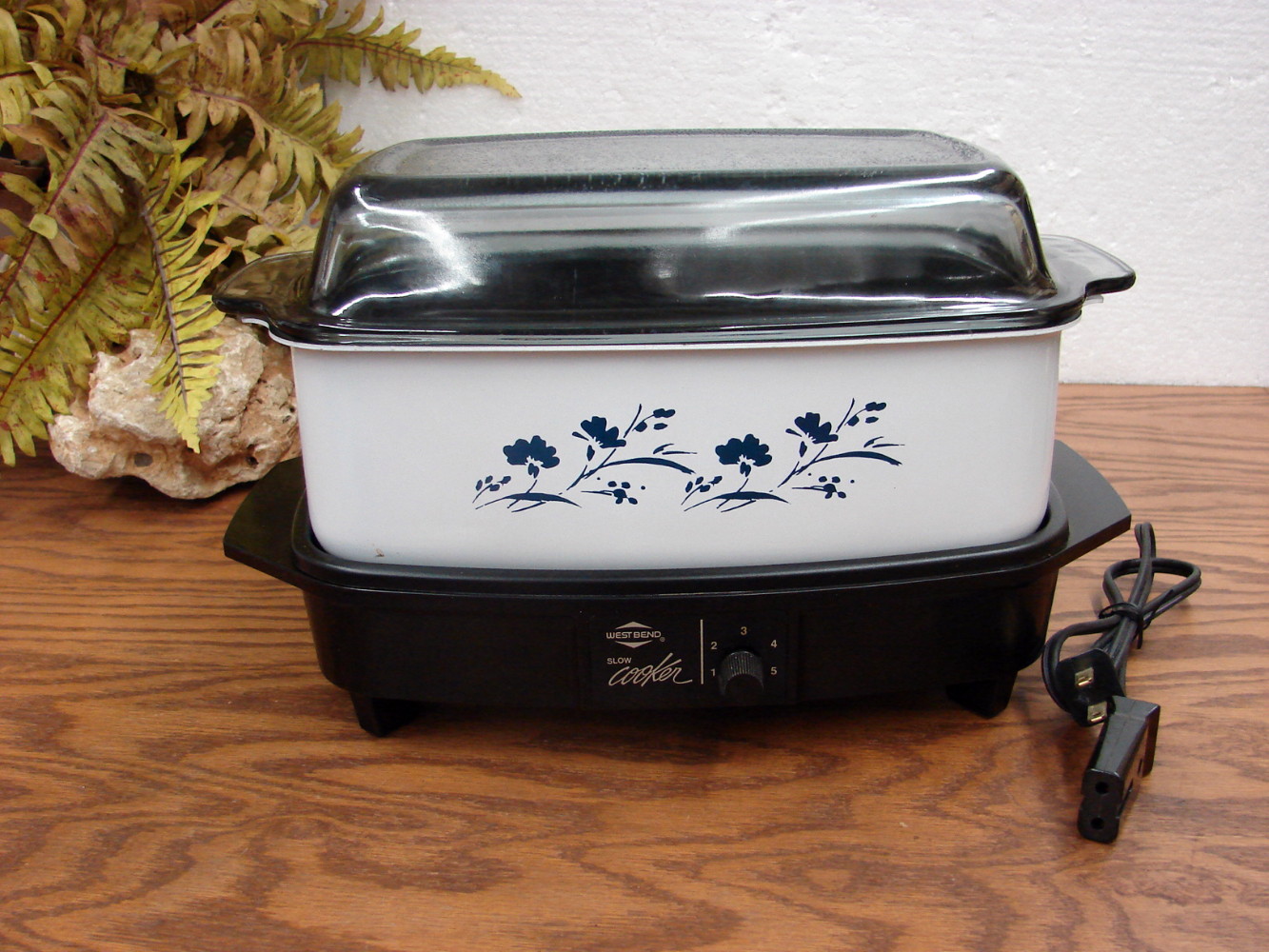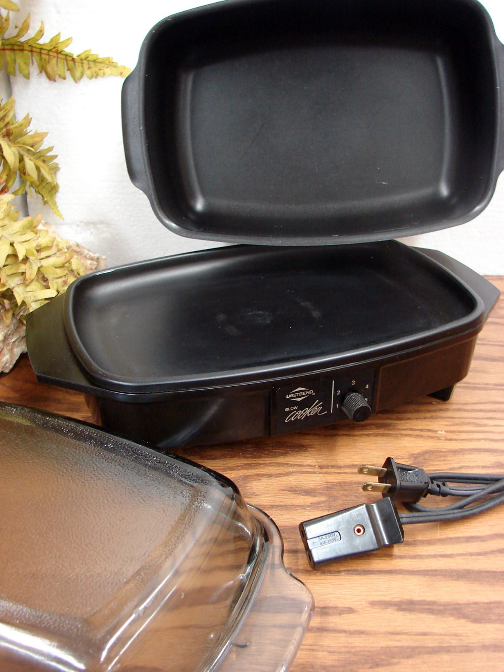 Vintage West Bend Slow Cooker with base, metal pot, deep lid and cord. Works as intended. Clean and ready to go. Some light wear as shown.