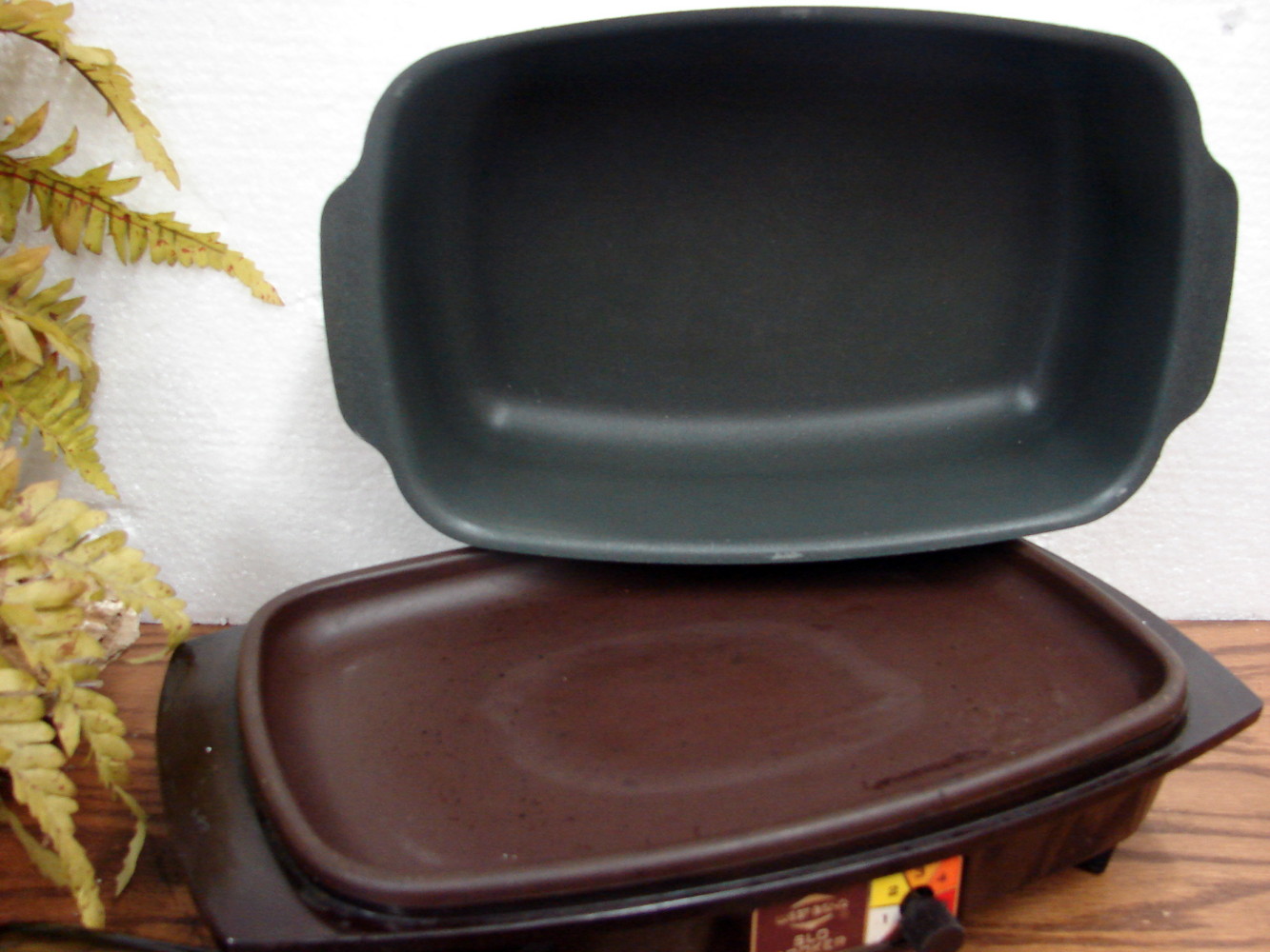 Vintage West Bend Slow Cooker with base, metal pot, deep lid and cord. Works as intended. Clean and ready to go. Some light wear as shown.