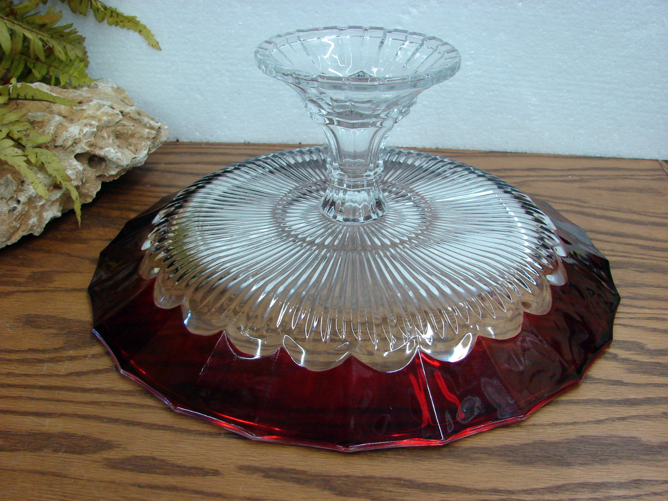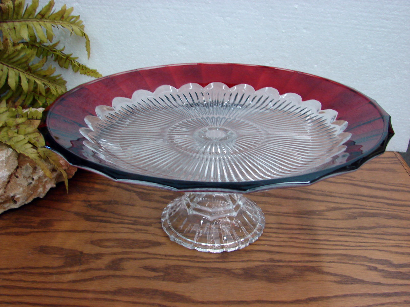 Retired Mikasa Crimson Dawn Pedestal Cake Display Server Platter Ruby Crystal Glass