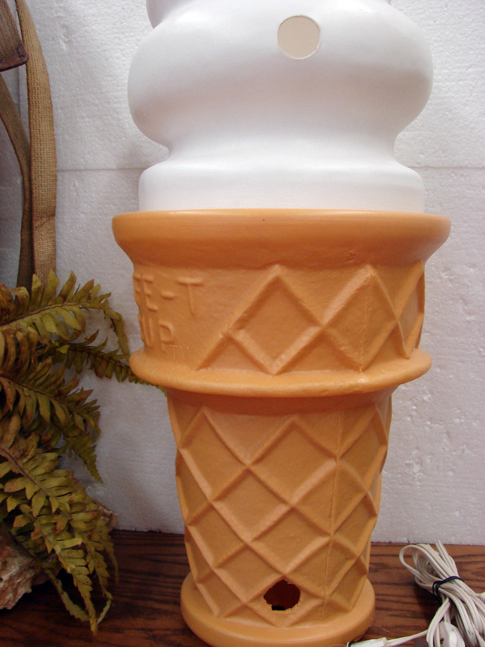 Oversized Blow Mold Vanilla Ice Cream Cone Display Swirl Top Safe-T Cup