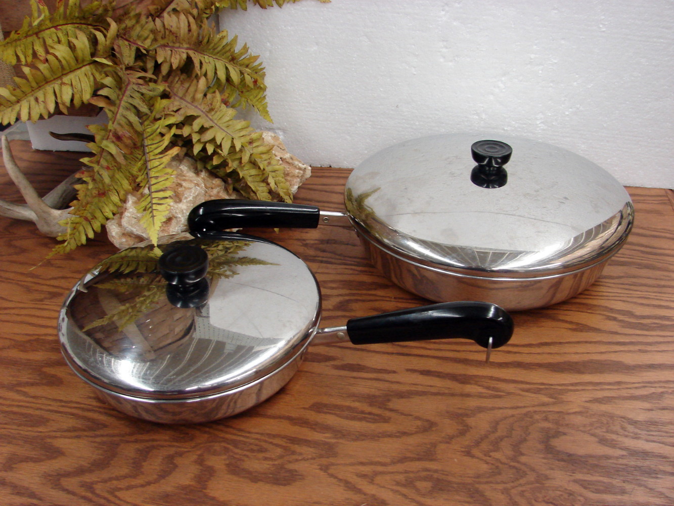 Professional Quality Revere Ware Tri-Ply Disc Stainless Steel 9″ Skillet Fry Pan w/ Lid