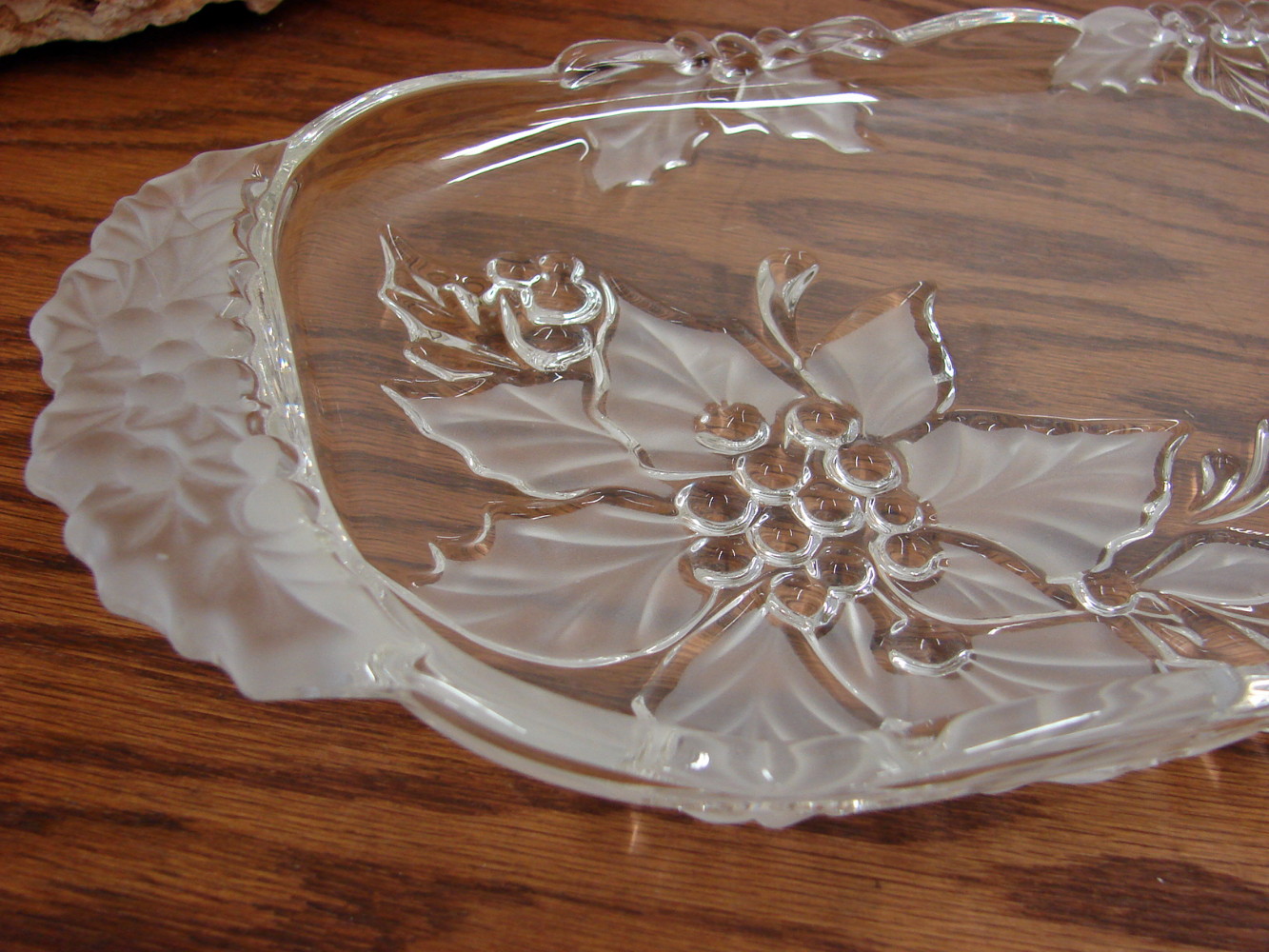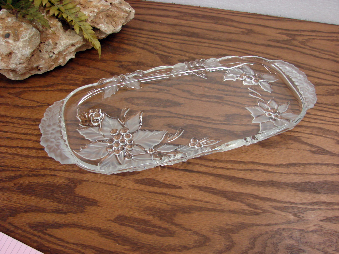 Retired Mikasa Satin Poinsettia Small Narrow Tray Relish Dish Frosted Crystal