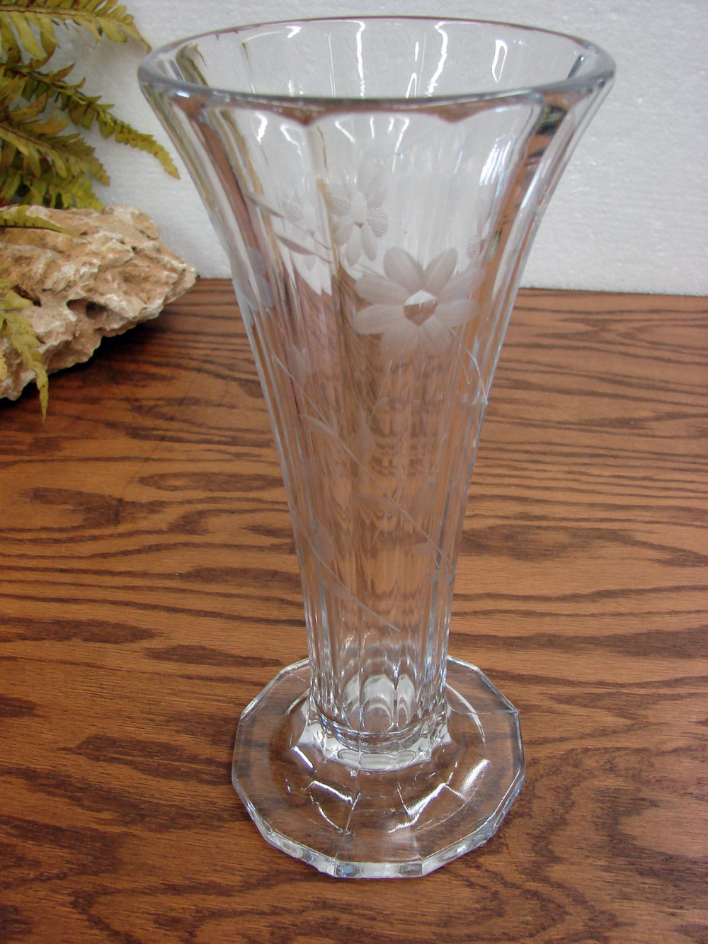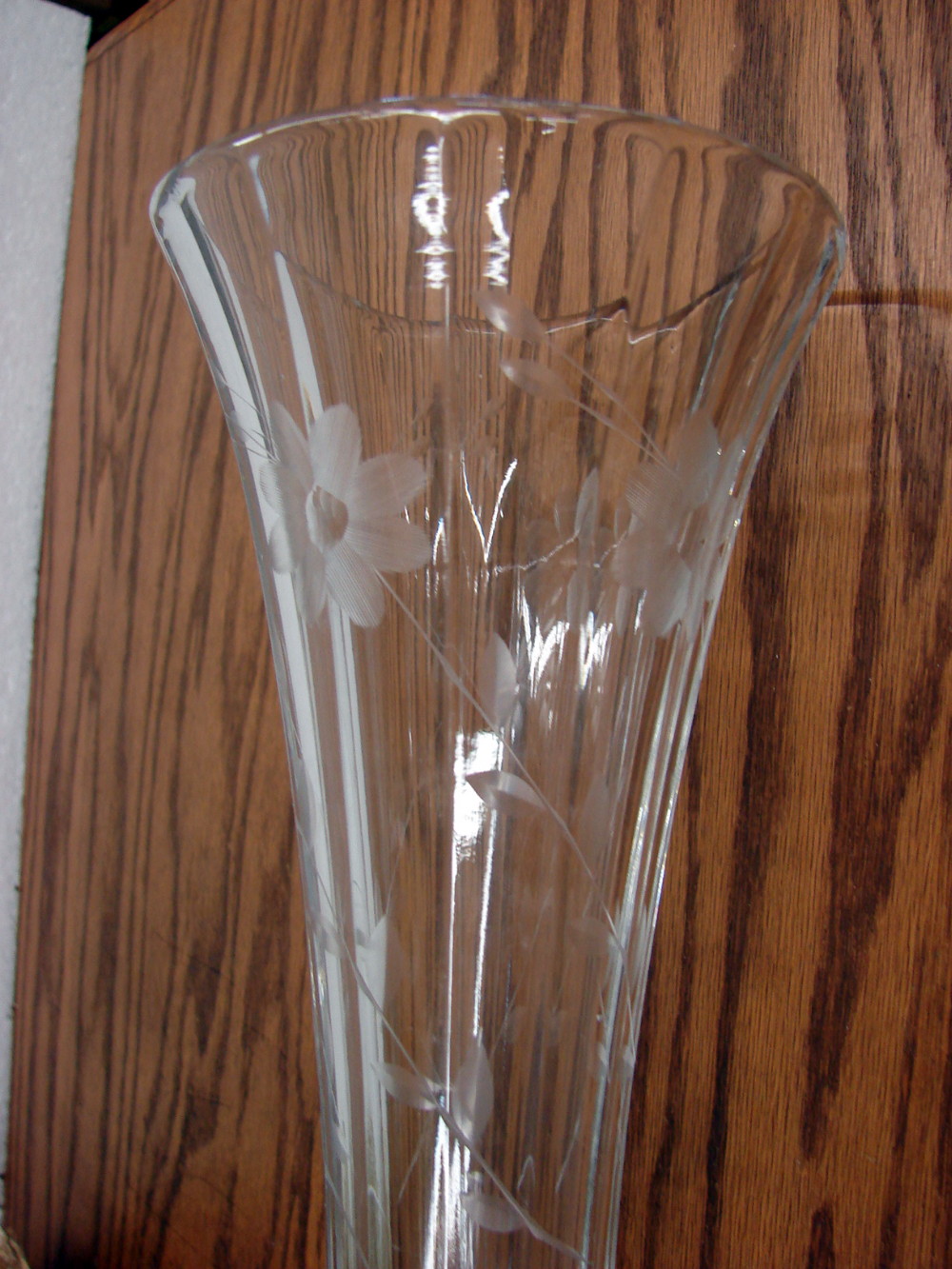 Retired Princess House Etched Crystal Glass Heritage Flared Footed Vase as is