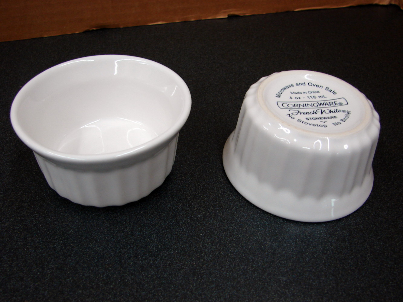 Corning Ware French White Bake Microwave Serve and Store. This set includes two 4 oz Ramekins, perfect for sauce and dips also. Free from damage. Many more options in this style also available.