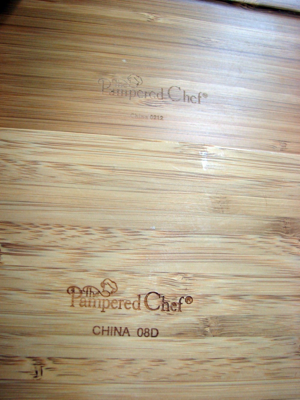Previously enjoyed Pampered Chef Bamboo wood trays, one perfect for crackers (15 1/4″ x 5″) and the other perfect for meat and cheeses (13 1/2″ x 10″).