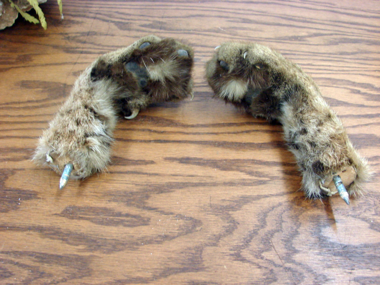 Set of two real taxidermy tanned Bob Cat Paws bent to hold a towel or coat. Measures about 5 x 5″. Sharp claws in tact and embedded heavy duty screw for ease of mounting.