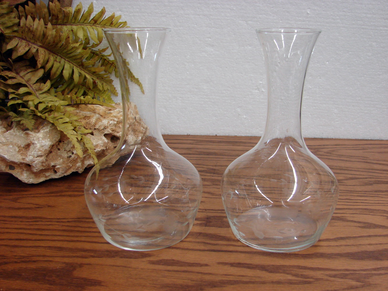 Very elegant Retired Princess House Etched Crystal Glass Heritage Set of Two Bulbous Vases.   Measure about 8 1/2″ tall.   Free from damage.  Many more Heritage Etched options also available.