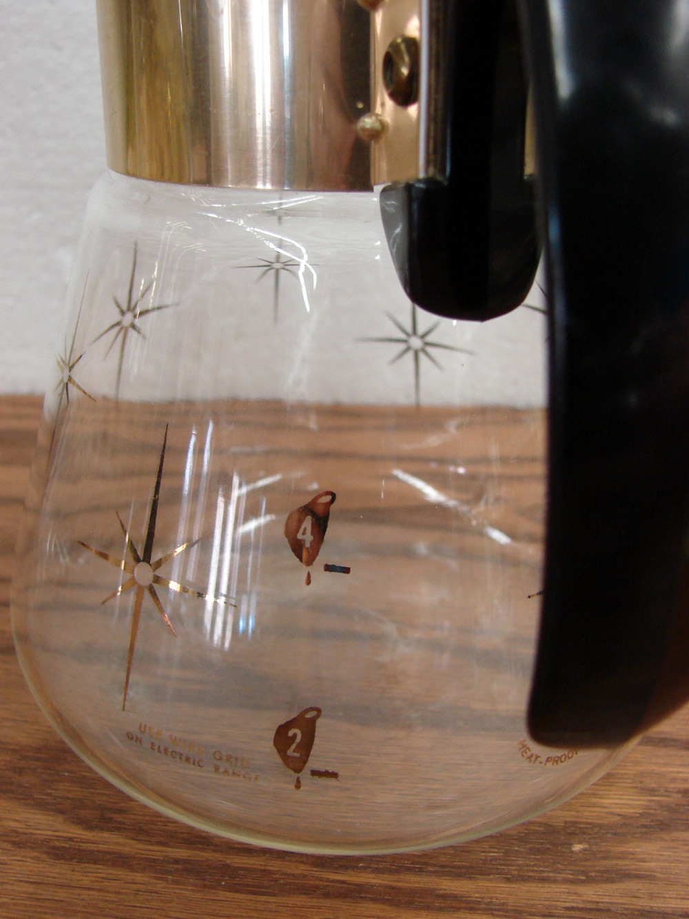 Vintage PYREX Gold Trim MCM Carafe Decanter Pitcher Golden Wheat 10 Cup w/ Warmer