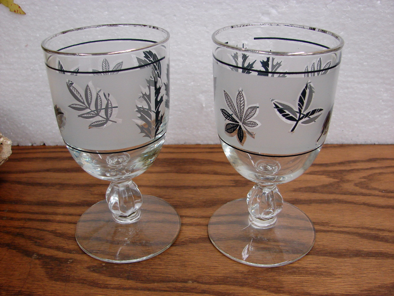 Set/2 Water Goblet MCM Vintage Libbey Silver Leaf Frosted Barware Foliage