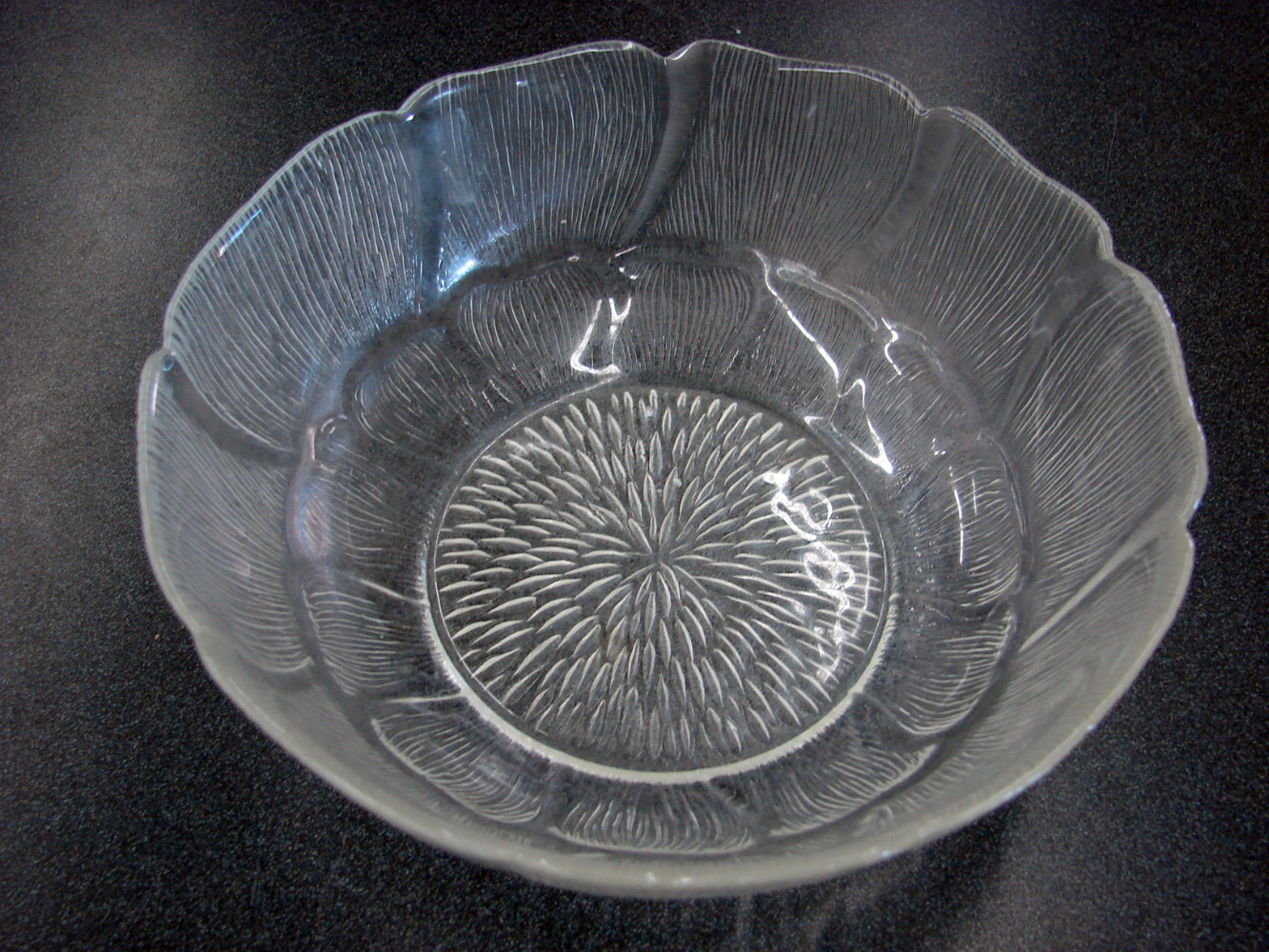 Set/3 Bowls 7″ Embossed Glass Arcoroc France Fleur Sunflower Petal Floral