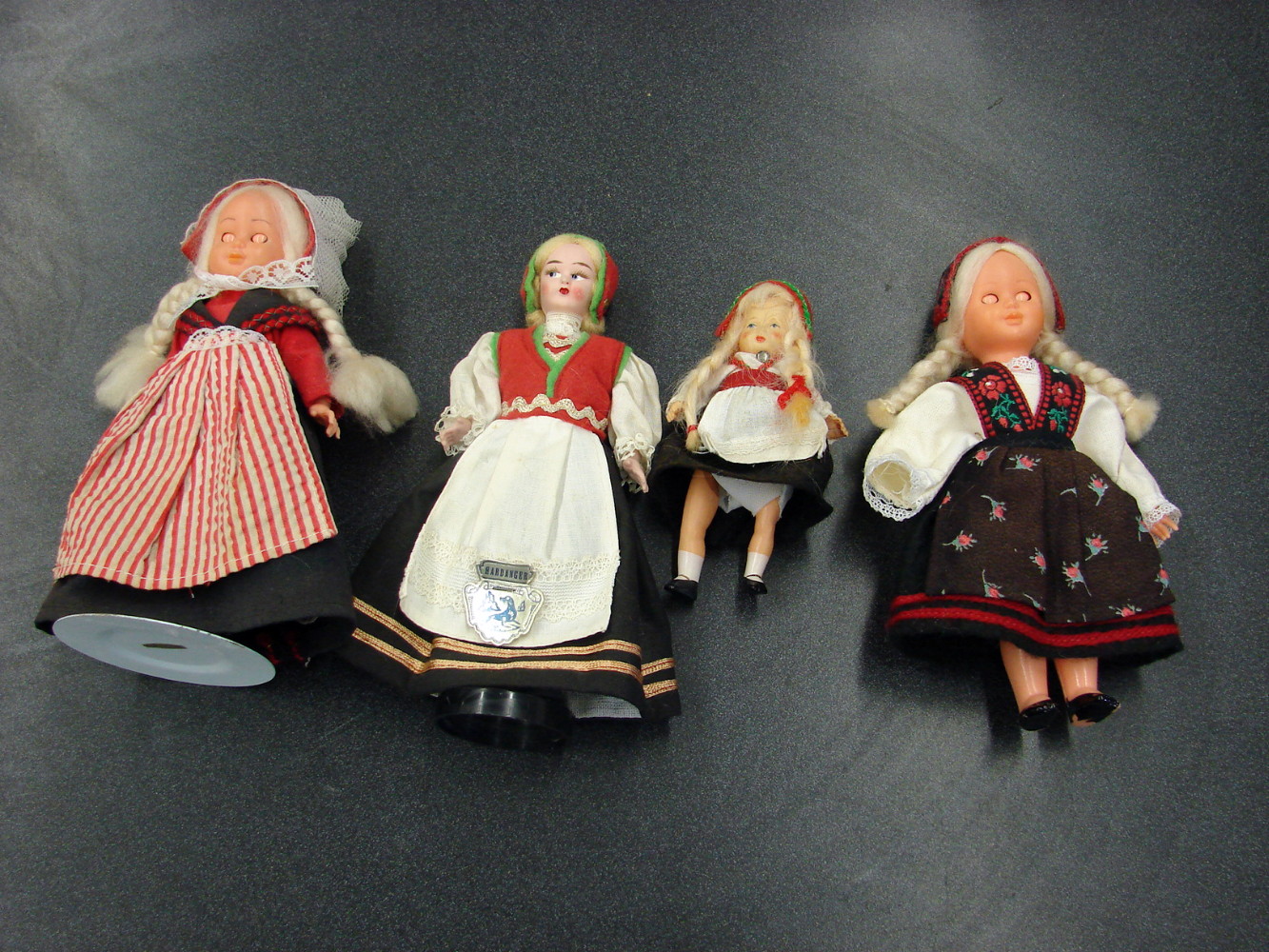 Set/4 Vintage Scandinavian Norway German Swedish Small Dolls Authentic Dresses