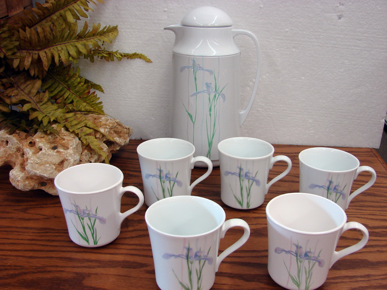 Vintage Corning Ware Corelle Shadow Iris pattern Set of 6 Coffee Cups. Free from damage. Many more options of Visions PYREX pieces also available.
