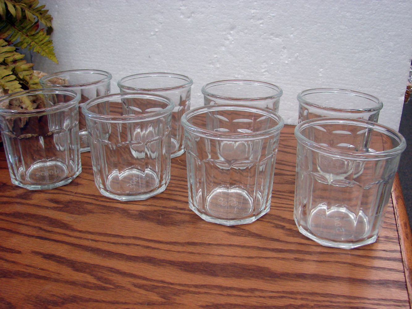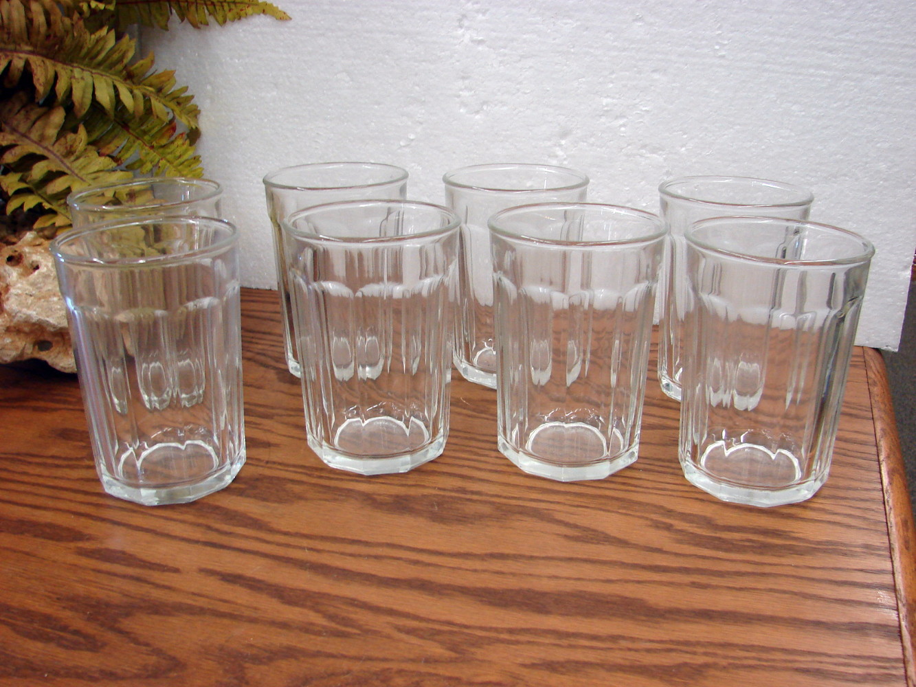 Luminarc Cristal D’Arques Panel Working Glasses from France   Set of 16 in two different sizes.  8 Flat Tumblers that measures about 3 3/4 x 3 3/4″ and hold about 14 ounces and 8 High Ball glasses that measures about 5 1/4 x 3 1/4″.  Dusty but free from damage.