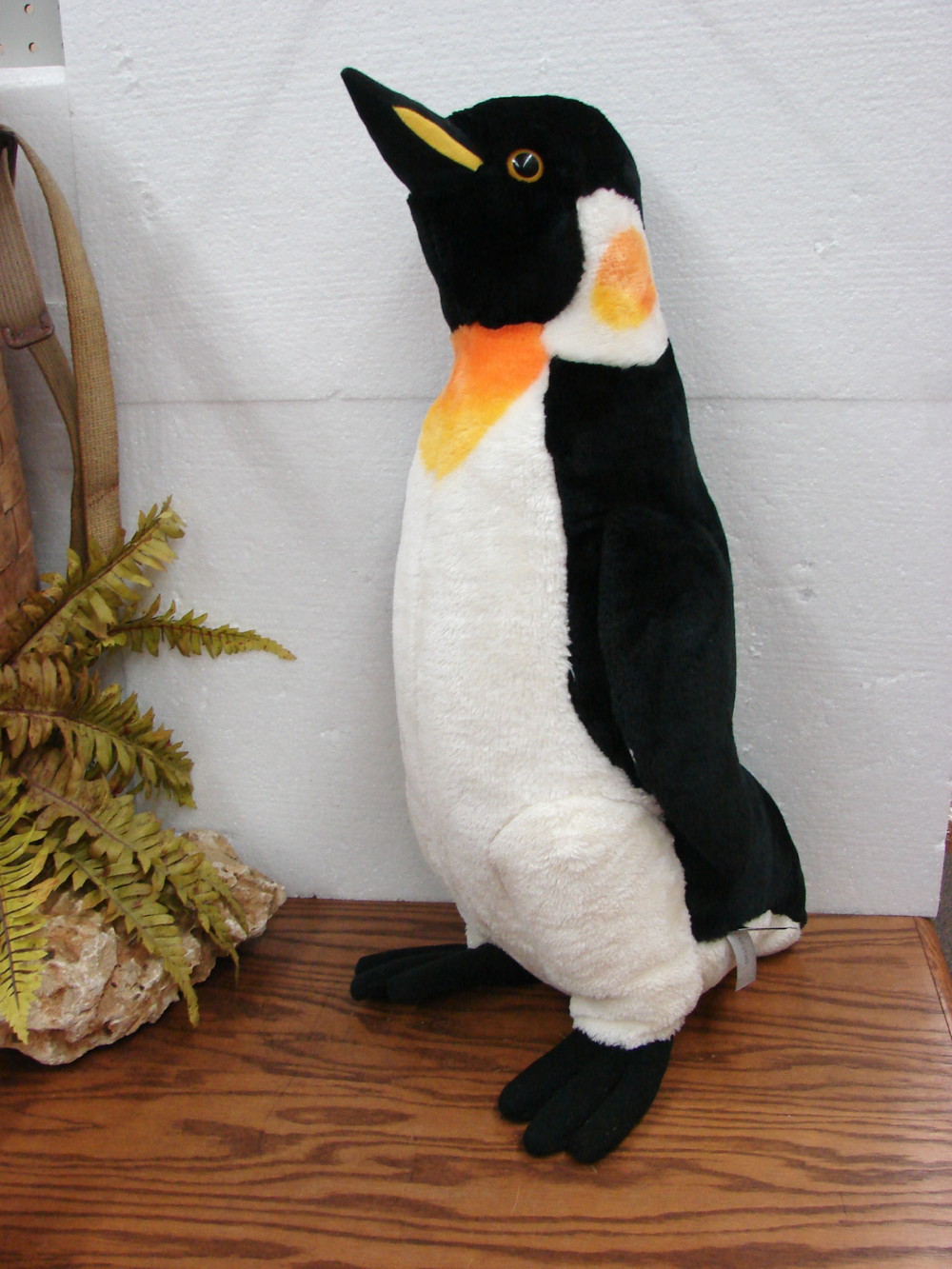 Previously loved Melissa & Doug Emperor Penguin in the 24″ tall size.   Tag is faded but otherwise is free from damage.