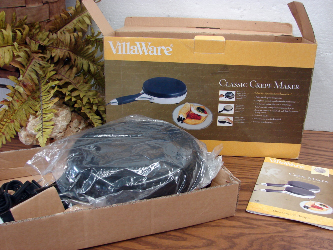Villaware quality in an Electric Crepe Maker. Not sure it was ever used, looks to be brand new in box. Box shows minor shelf wear.
