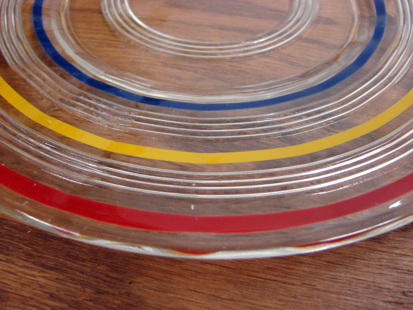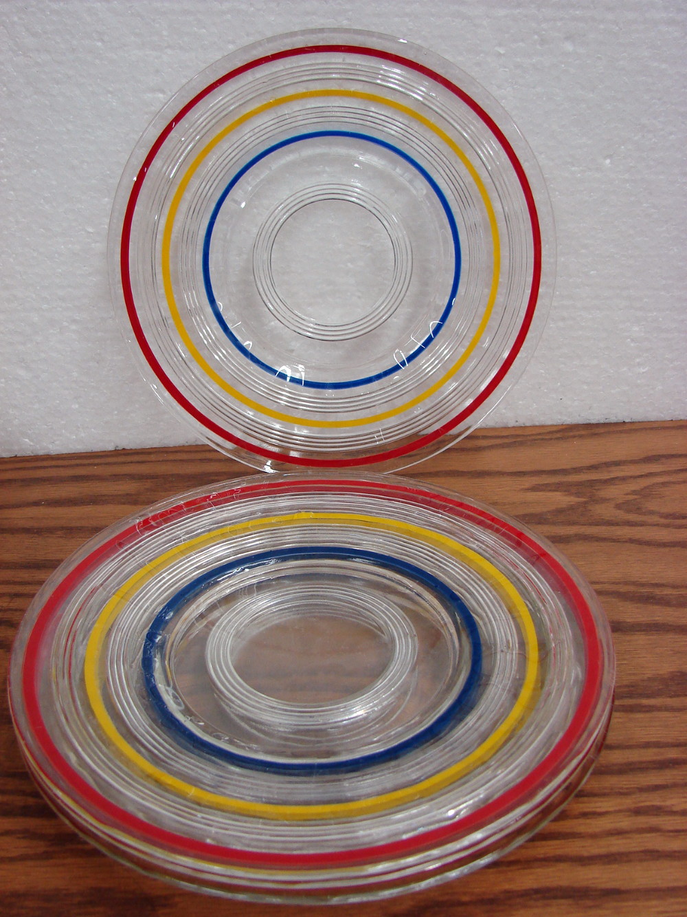 Vintage Anchor Hocking Banded Rings Primary Color Luncheon Plates Set/4