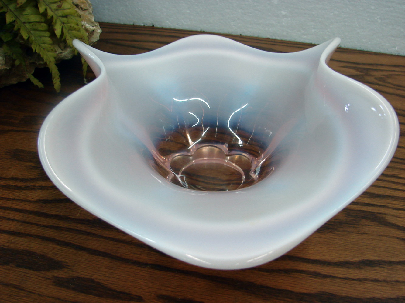 Vintage Art Glass Duncan Miller Pink White Canterbury Cape Cod Bowl