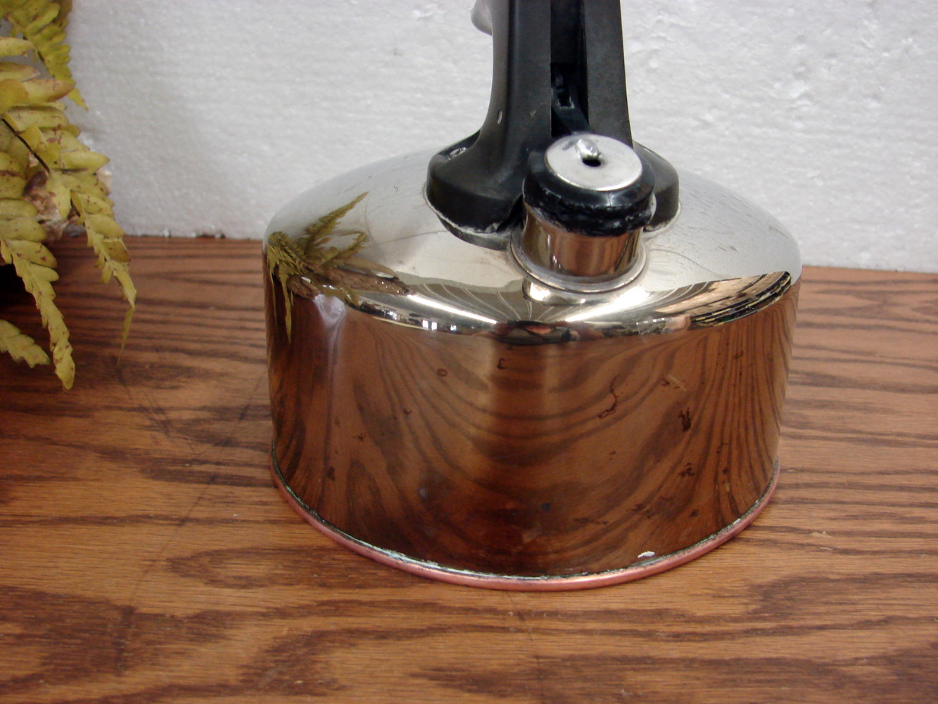 Vintage Revere Ware Copper Bottom 1 1/2 Quart Whistling Teapot. Previously enjoyed, still a lot of life left. This one got hot and has some heat marks around the bottom rim. Many other Revere Ware Copper bottom options also available.