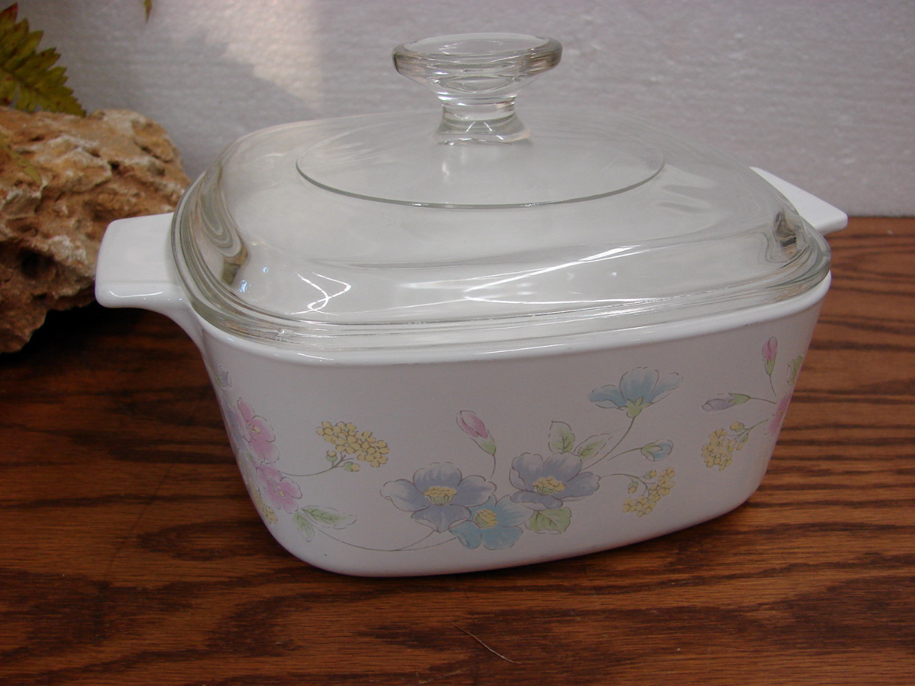 Vintage Corning Ware Corelle Pastel Bouquet 1 1/2 Liter Casserole w/ PYREX Lid