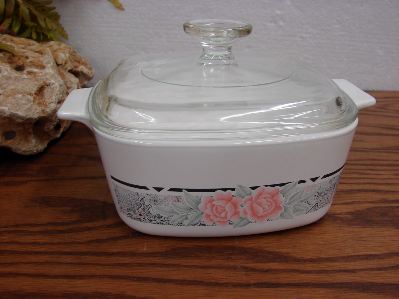 Vintage Corning Ware Corelle Silk and Roses pattern 1 1/2 Liter Casserole w/ PYREX Lid. Free from damage. Many more options in this pattern also available.