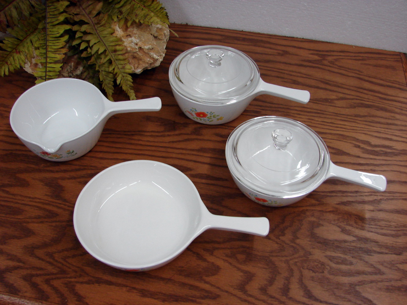 Vintage Corning Ware Corelle Wildflower pattern P-82 Small 1 1/2 Pint Sauce Pan w/ PYREX Lid. Free from damage. Many more options in this pattern also available.