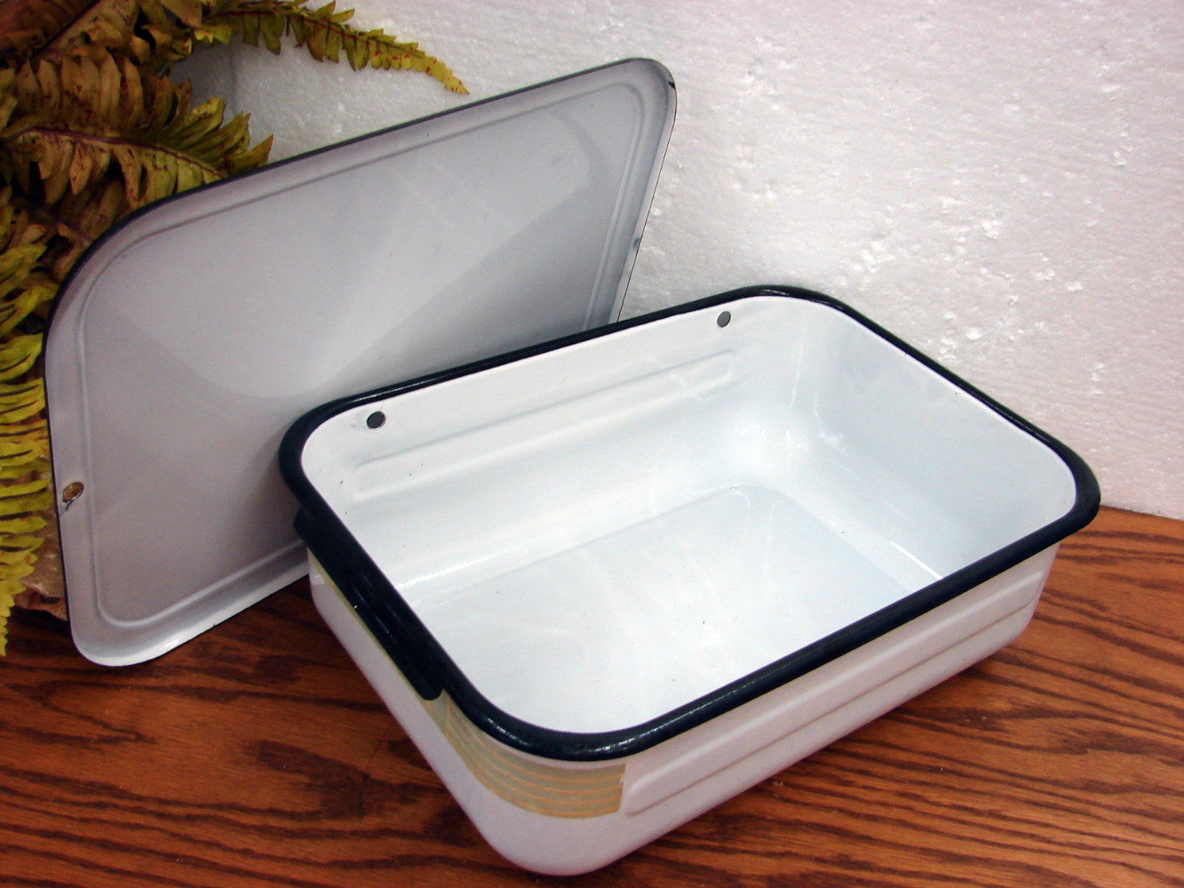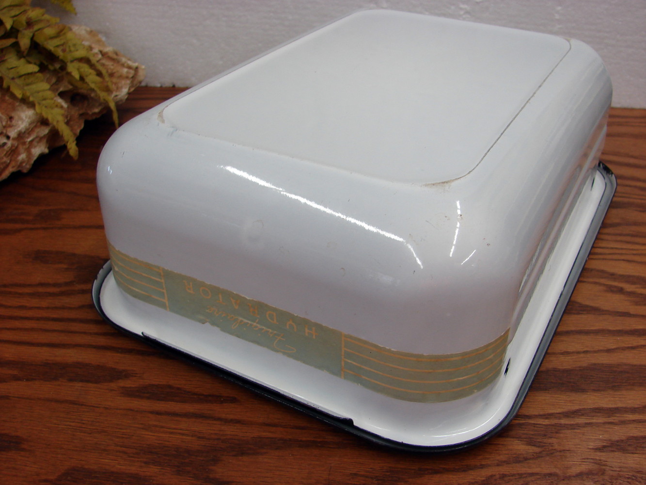 Vintage Frigidaire Hydrator Refrigerator Box Drawer w/ lid. Measures about 14 x 10 x 4 1/2″. Some areas of wear on the enamel, but otherwise free from damage. Unique with the original label on front.
