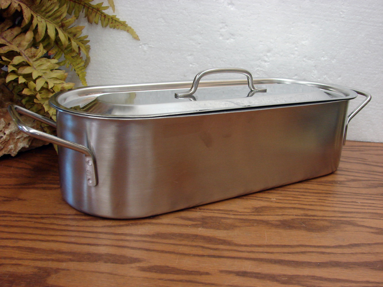Very nice previously enjoyed heavy duty Stainless Steel Fish Poacher Steamer complete with inside grate and lid. Some minor wear as expected. Measures about 18 1/4 x 6 1/4 x 5 1/2″ tall not counting the handles. Much heavier coming in at over four pounds vs the 3 1/2 pound Himark version.