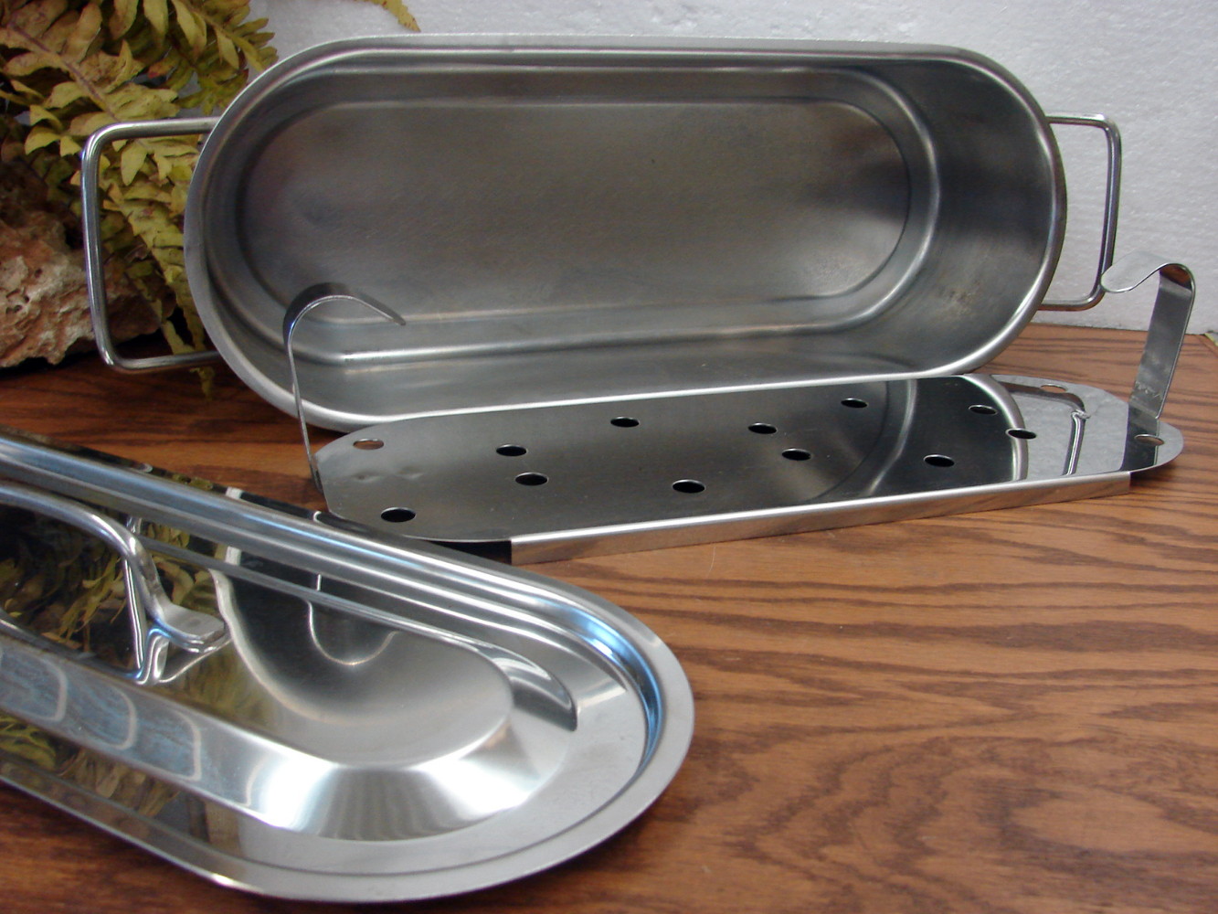 Vintage Heavy Duty Stainless Steel Fish Poacher Cooker Veggie Steamer Complete 18×6