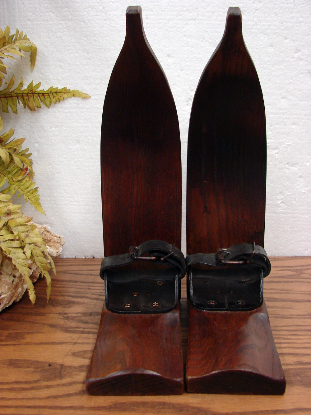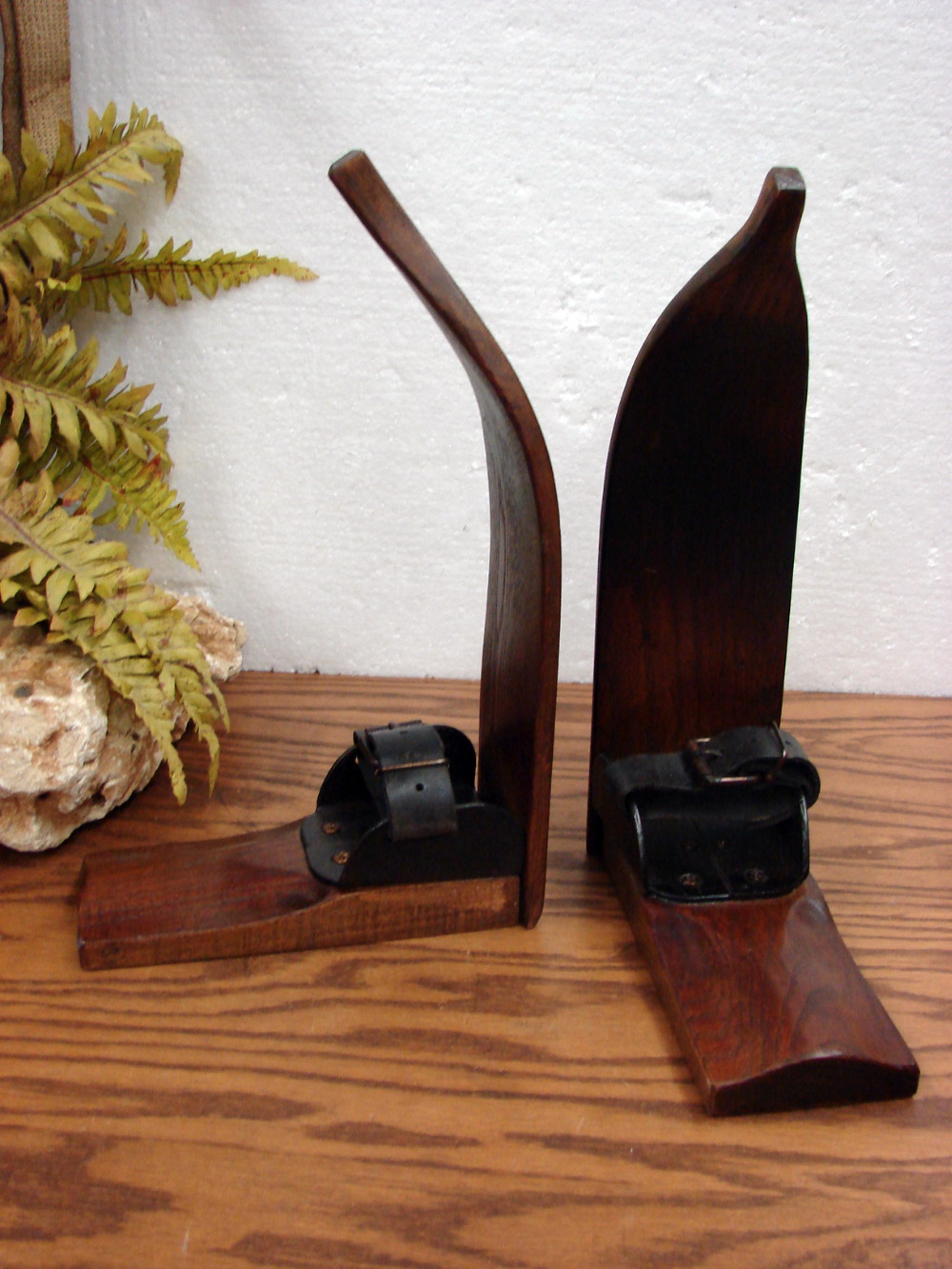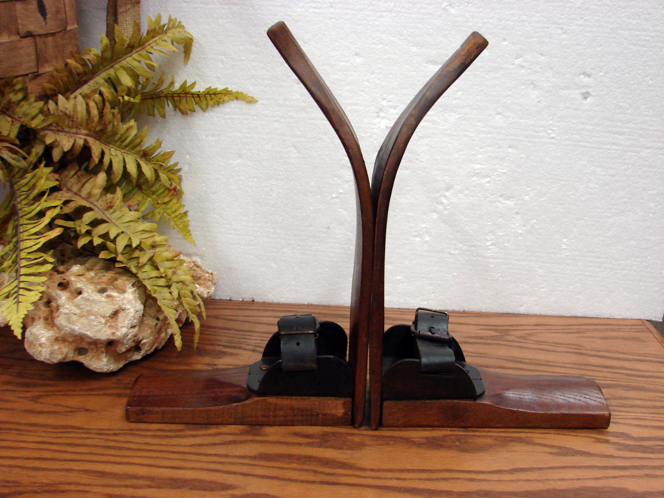 Hickory Dome Top vintage wooden ski Bookends. One is Hickory, the other may be Maple. Regardless they make awesome book ends. Measure about 12 1/8″ tall by 7 1/2″ long.