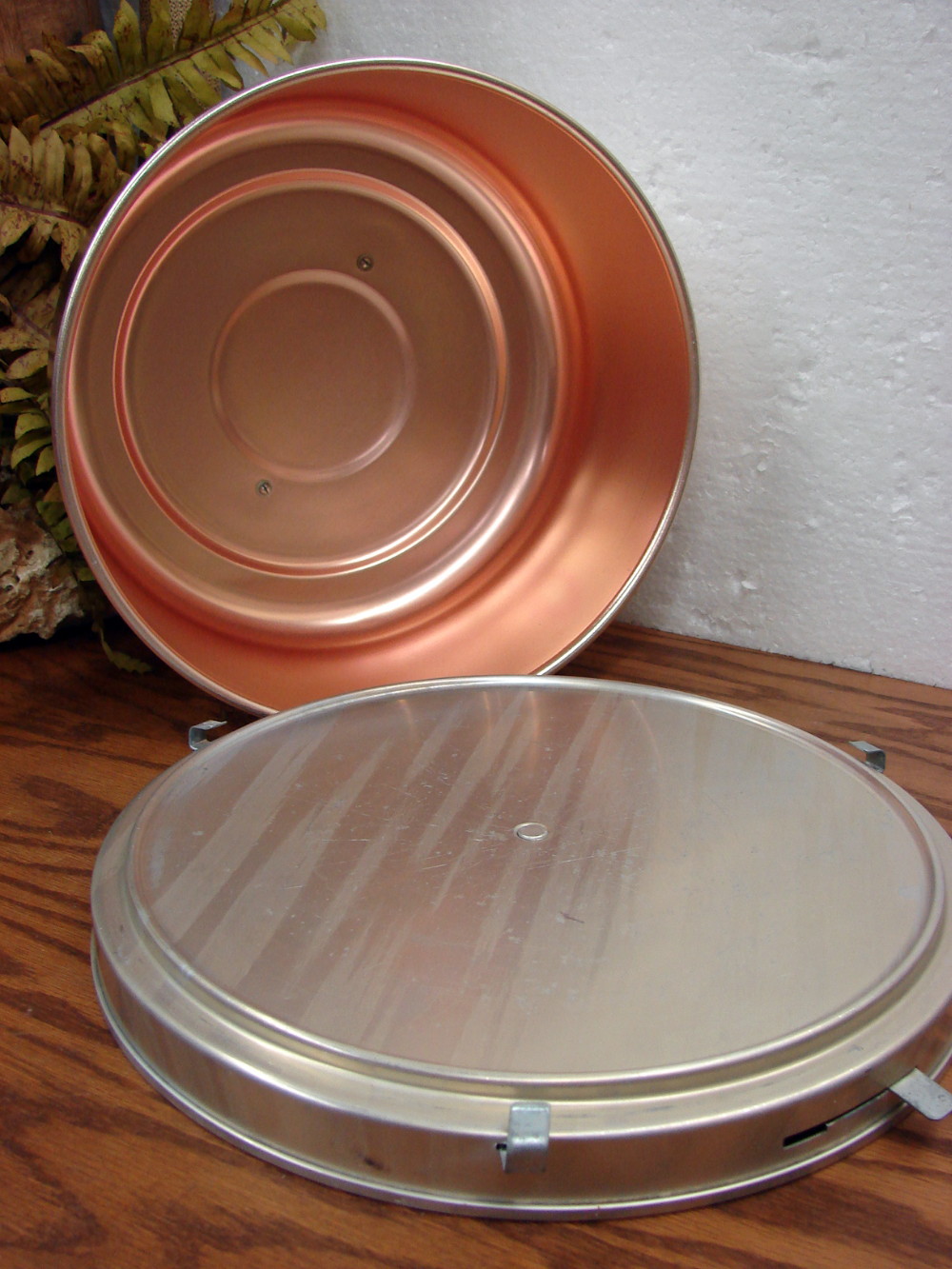 Vintage MCM Copper Pink Tone Mirro Aluminum Locking Cake Carrier #2003 Wood Handle