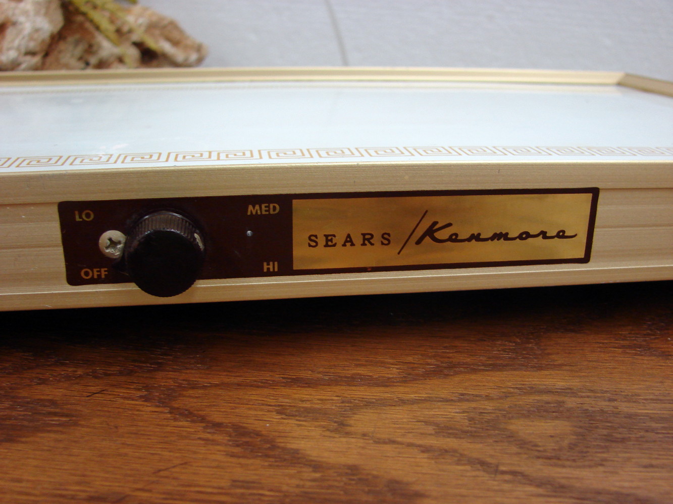 Vintage MCM Electric Hostess Warming Trays are perfect for Holidays, Buffets or simply big long family dinners on a Sunday. This one is a Sears Kenmore Electric Tray Model 377.65990. Works as intended. Warmer plate portion measures about 15 x 8″. Many other styles and options also available.