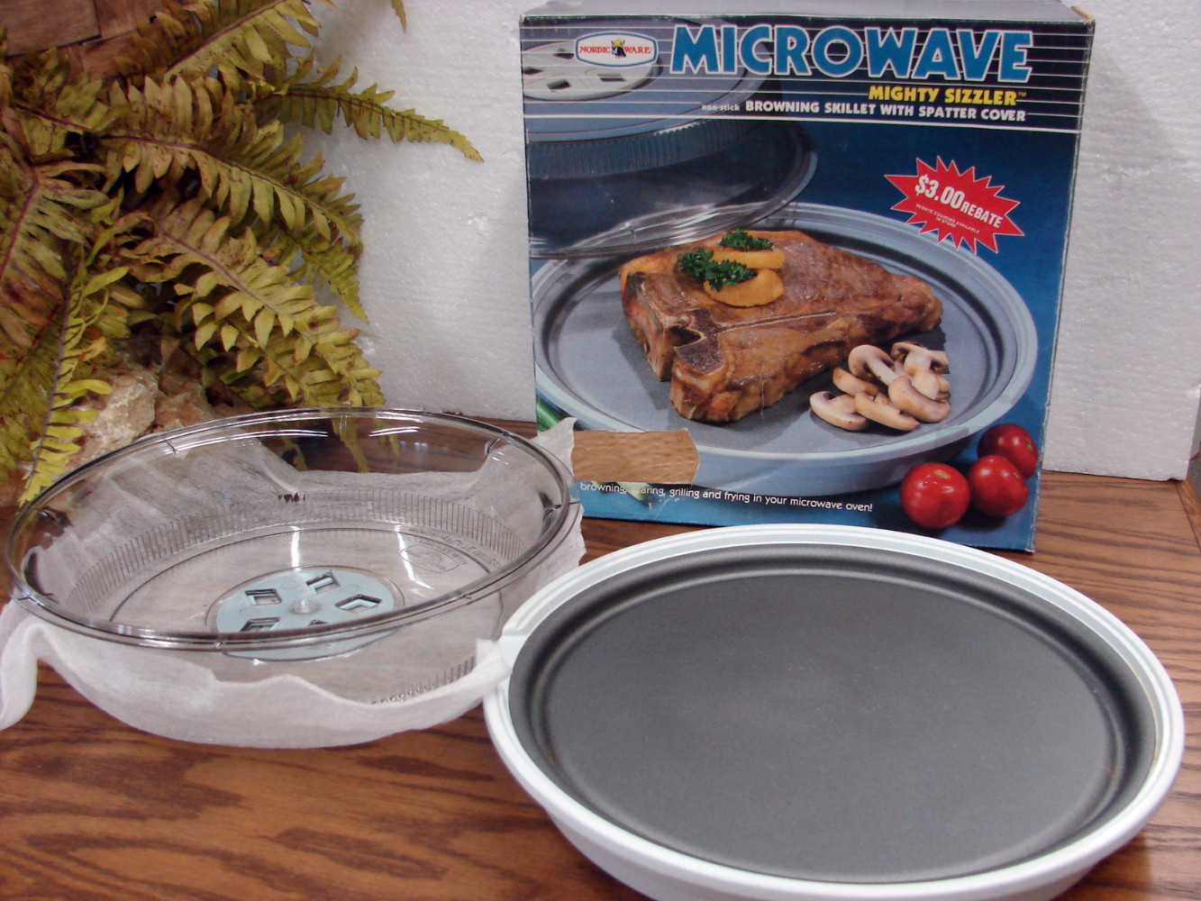 Nordic Ware Microwave Mighty Sizzler Browning Skillet with Splatter Lid.   Like new in box.