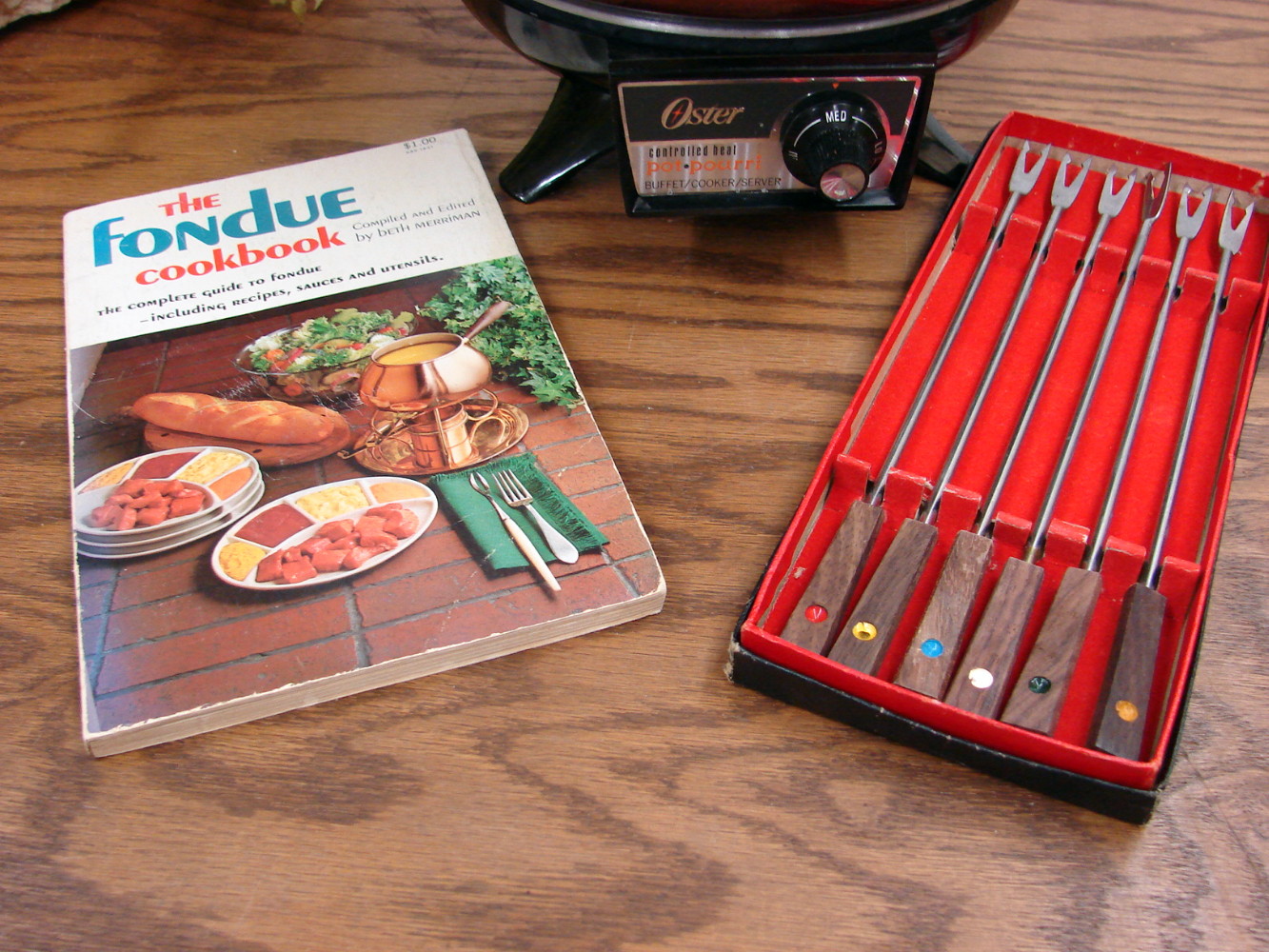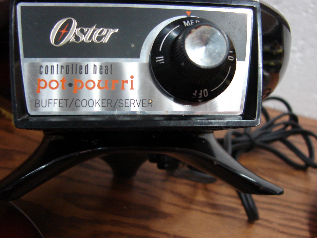Vintage Non Stick Oster Pot-Pourri Controlled Heat Buffet Cooker Server Fondue complete with Forks and Fondue Book. Tested, working and free from damage. Normal use wear.