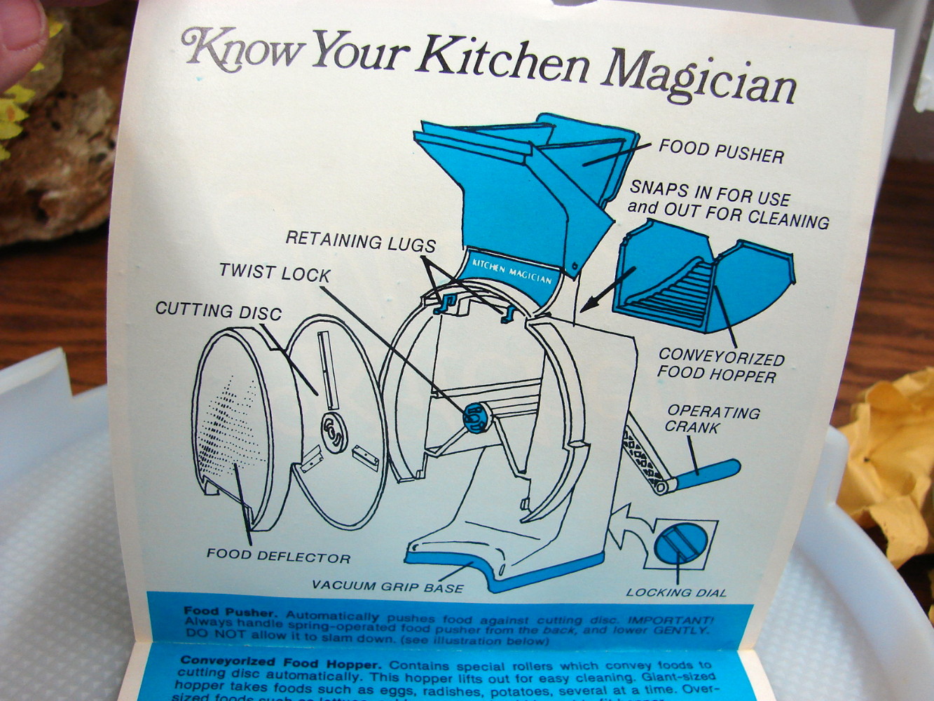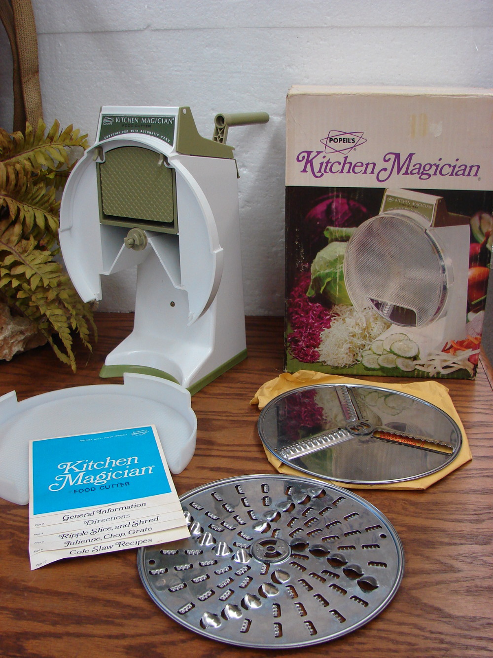 Vintage Kitchen Magician Food Cutter in original box. Includes everything shown, not sure it was used much.
